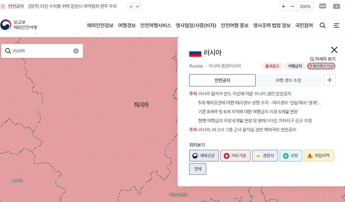 여행 전 반드시 아래 외교부 여행경보 사이트에서 최신 정보를 확인하시기 바랍니다.