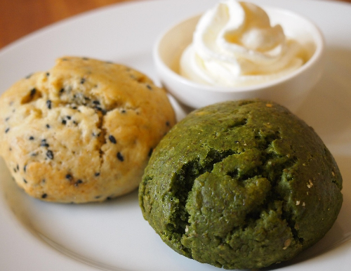 밀가루 반죽을 오븐에 구운 빵으로, 크림과 잼을 발라 먹는 영국식 티타임 간식이다.