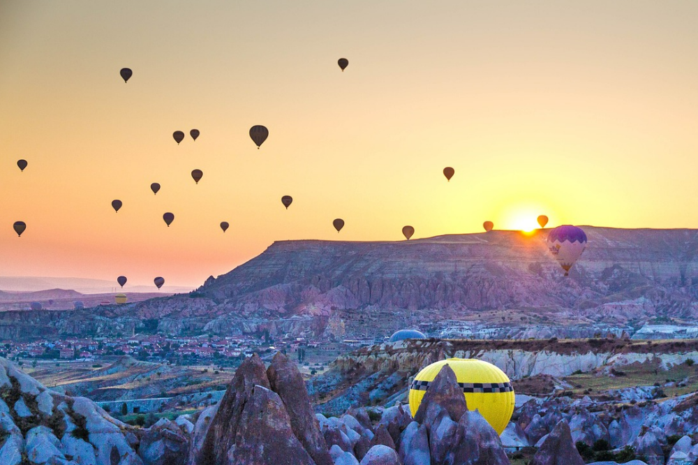 - 열기구 투어: 일출에 떠오르는 수십 개의 열기구 장관