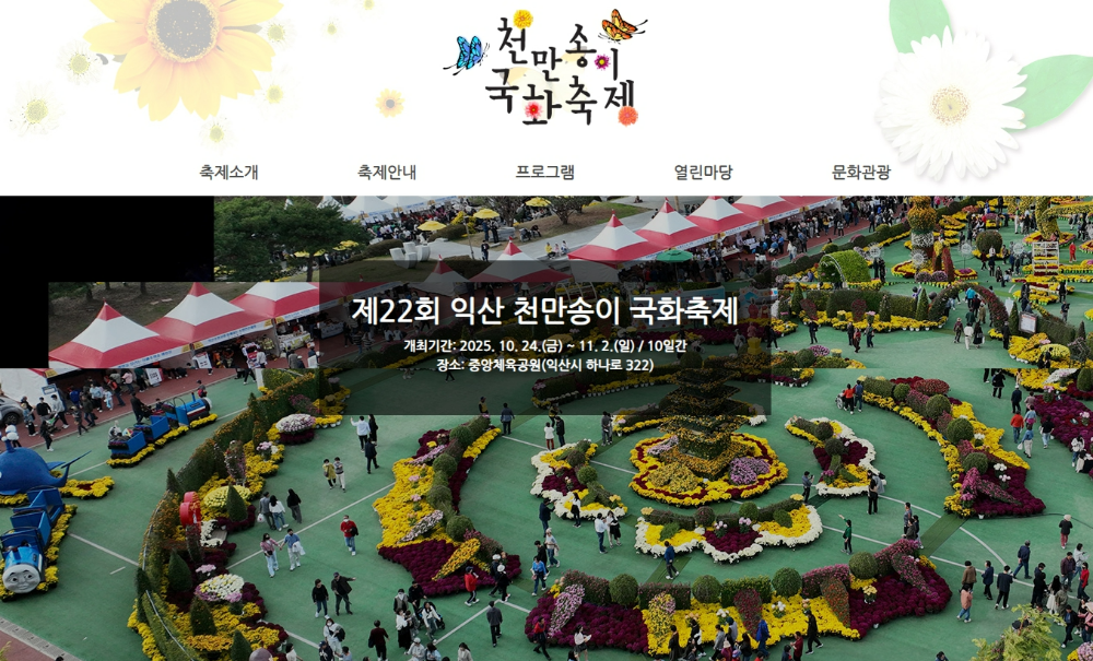 | 익산 천만송이국화축제 | 2025.10.24. ~ 11.2. | 전북 익산 중앙체육공 |